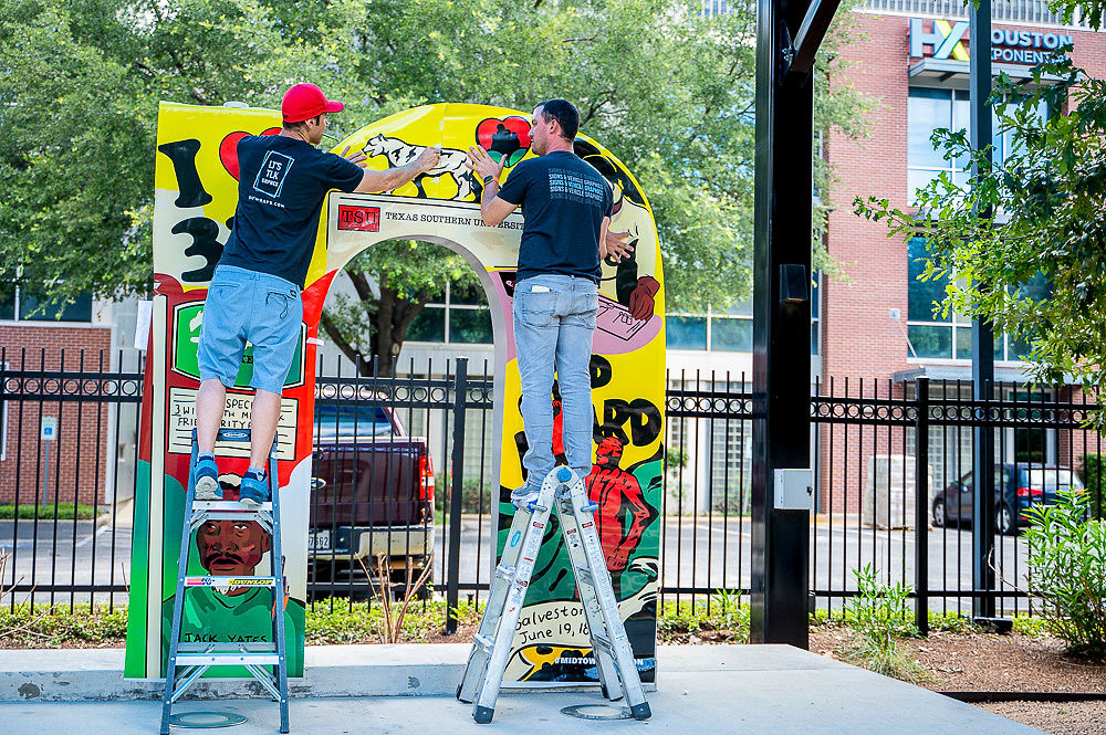 Local illustrator and creative designer Chris Robinson was selected from the applicants and commissioned for the project. His original artwork highlights the neighborhoods and each’s positive impact on Houston’s dynamic and distinct culture.