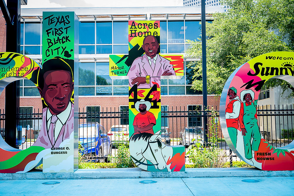 N – Finally, the letter “N” embraces the iconic Third Ward, a neighborhood celebrated not just in Houston but throughout the world. This letter showcases the unique elements that make Third Ward truly special, from Frenchy’s to Texas Southern University (TSU) to the legendary DJ Screw to the transformative Shape Center. As the last letter in the installation, it poignantly captures the essence of Juneteenth, incorporating key dates and a reference to Galveston.
